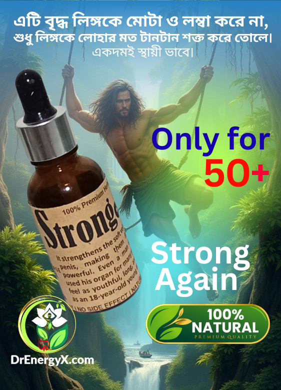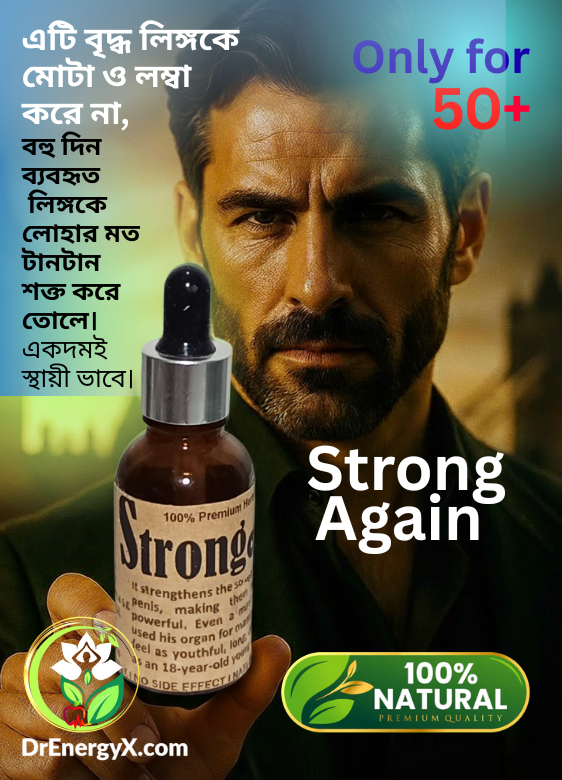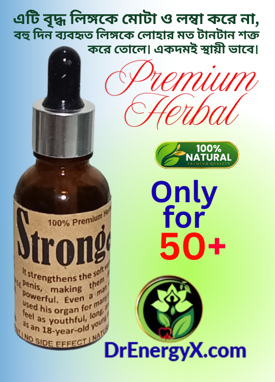 শুধু মাত্র ৫০+উর্দ্ধ পুরুষদের জন্য। পুন:রায় হাড়েরমত শক্ত করার মালিশ। এটি পরিক্ষিত ও প্রমানীত। ১০০% প্রিমিয়াম ভেষজ ও প্রাকৃতিক পণ্য। বয়স হওয়ার কারনে যাদের লিঙ্গ নিস্তেজ হয়ে গেছে, শুধু তাদের জন্য অত্যান্ত কার্যকরী মালিশ। DrEnergy_StrongAgain একটি প্রথম সারির চিকিৎসা ম্যাসাজ তেল, রক্ত সঞ্চালন এবং শক্তি প্রবাহকে উদ্দীপিত করে, স্ট্যামিনা এবং সহনশীলতা উন্নত করে, দীর্ঘস্থায়ী কর্মক্ষমতা সমর্থন করে। মনে রাখবেন এটি আপনার লিঙ্গকে পুনরায় হাড়ের মত শক্ত করা ছাড়া, অন্য কোন কাজই করবেনা, যেমন: লম্বা বা মোটা করা।